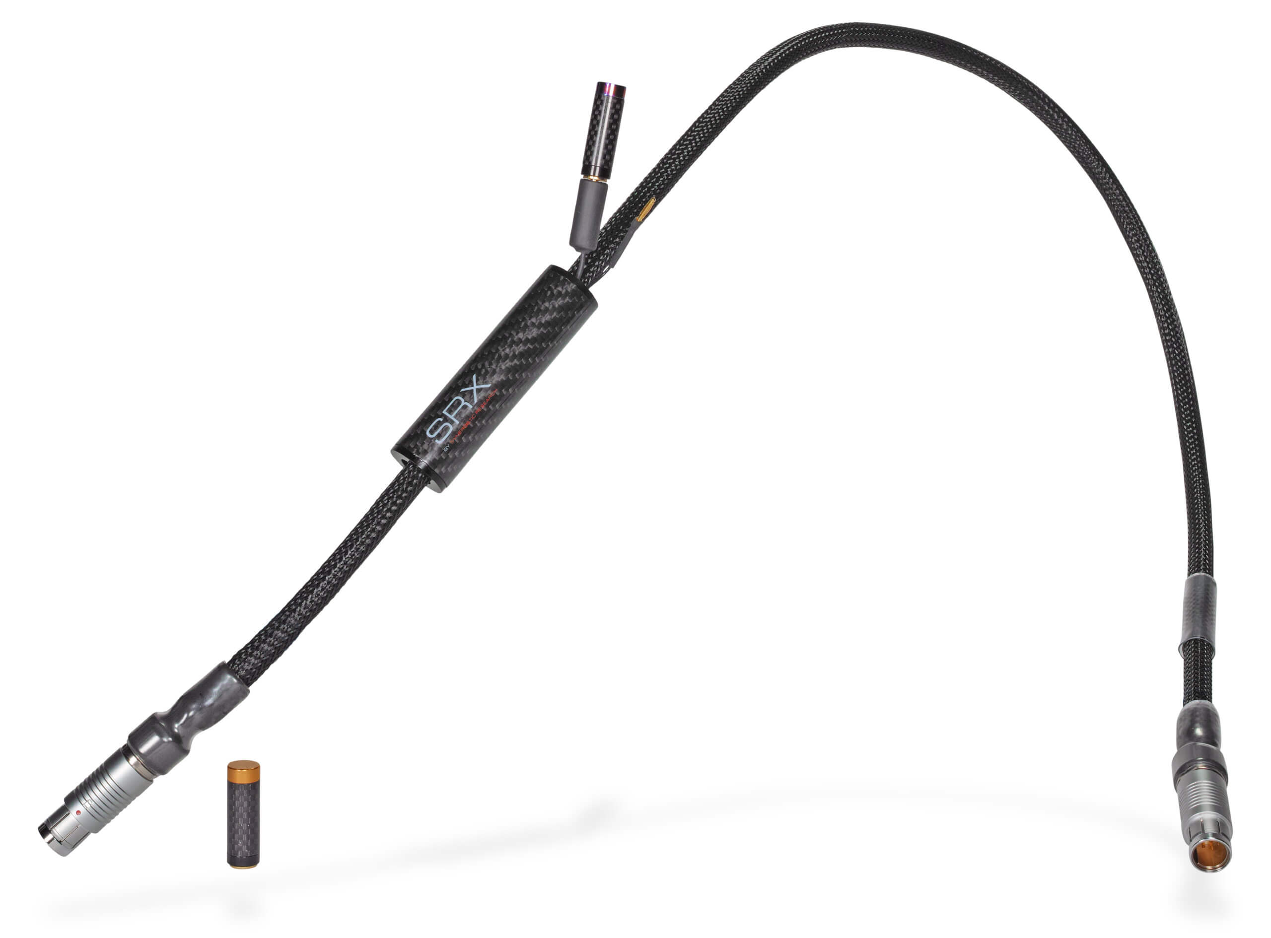 SRX XL cables come standard with the most potent and musical SRX Master and Gold carbon fiber UEF Tuning Bullets in our company’s 30-year history. The bullets are specially voiced for the SRX cable series so you can strike the perfect balance between detail and musicality for your system. Both Gold and Master bullets are handcrafted in our Southern California Factory from carbon fiber and aircraft aluminum, with the Gold bullet plated in 24k gold not only for aesthetic beauty but also to help voice the bullet to its intended role as the most musical option for specific systems. To use SRX Carbon Fiber Tuning Modules, allow your SRX cables to settle into your system for 48-72 hours, and then experiment with your two options on a cable by cable basis. Start by inserting a Gold Bullet and then compare to the Master option and select the variant that makes music in your system. Gold Bullets have a warm and liquid balance that is also more open and transparent than our other warm-biased tuning bullets. While Master is more extended and detailed but the option that will work best and sound neutral is totally system dependent. If you voice your SRX cables one pair at a time, you will find one color that works best in most applications, plus a few that perform better with the alternate option. This process is how you will get the best from both Gold and Master bullets when arriving at a bespoke cable loom voiced for your unique system. Note, UEF Tuning Bullets work 100% outside the signal path!